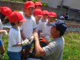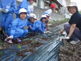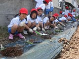 5月24日(木)、1年生で、畑の先生今井さんをお迎えして、いっしょにさつまいもを植えました。はやくおおきくなあれ(*^_^*)