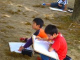 図工の学習で、外に出て絵を描きました(*^_^*)