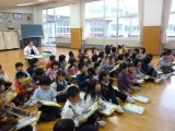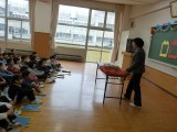 柴橋小より栄養教諭の安孫子先生をお迎えして、食べ物のはたらきについて教えていただきました。