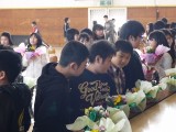 3月17日(日)、卒業式に飾る花のラッピング作業を行いました。このパンジーは、卒業式当日のステージ上を飾り、その後、感謝の気持ちを込めてお家の方へプレゼントします。メッセージもつけてきれいにできました(^^♪