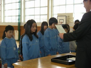 前期がんばっていきましょう♪(児童会任命式)