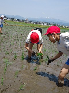 楽しかったね、どろんこになった田植え♪(5年)
