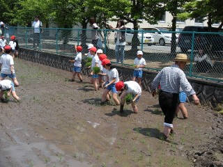 楽しかったね、どろんこになった田植え♪(5年)