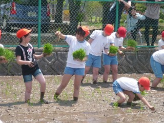 楽しかったね、どろんこになった田植え♪(5年)
