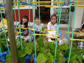朝顔のつるがのびたよ♪(1年)