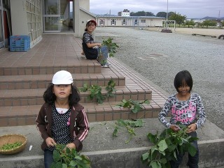秘伝豆を収穫して食べたよ♪(4年)