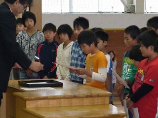 後期がんばっていきましょう!!(児童会任命式)