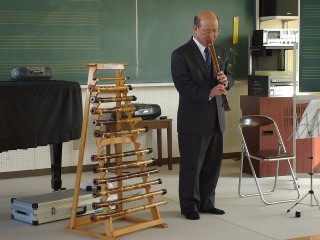 尺八の学習♪(5年:ゲストティーチャーを招いて)